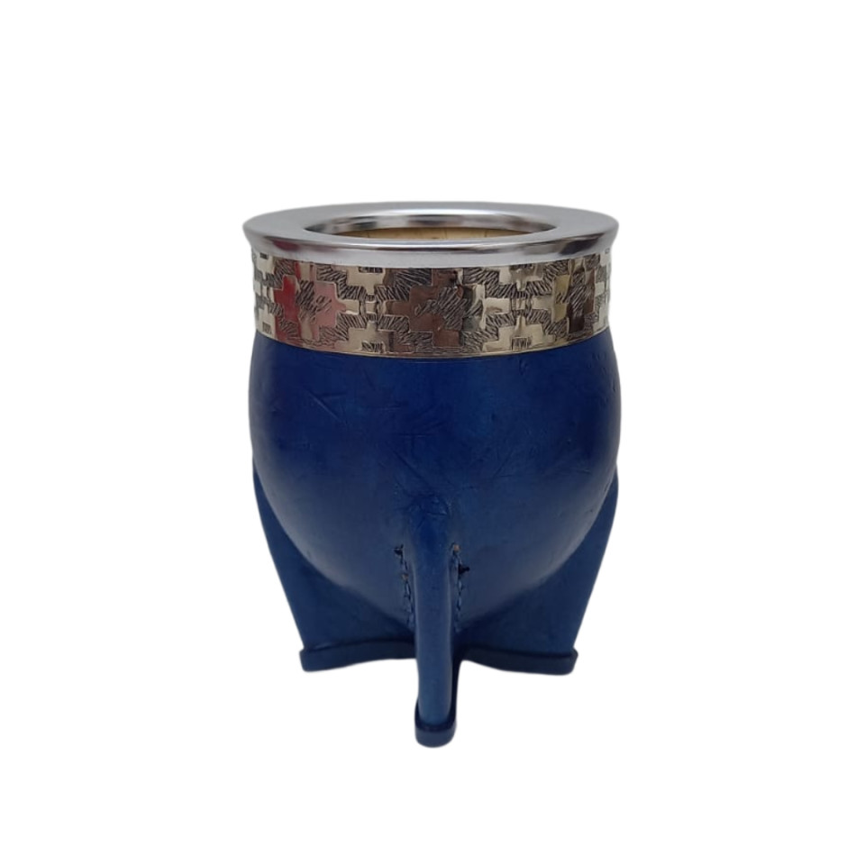 Mate Imperial de Cuero Liso Azul c /Virola de Acero Inoxidable Lisa y Fleje de Alpaca Labrado
