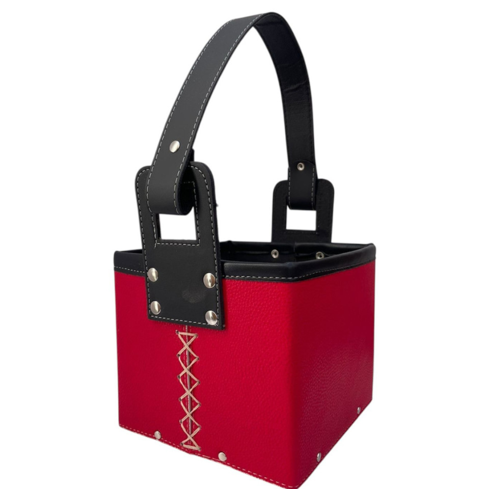 Bolso Matero Portatermo Canasta Cuadrada De Color Rojo C/ Costura