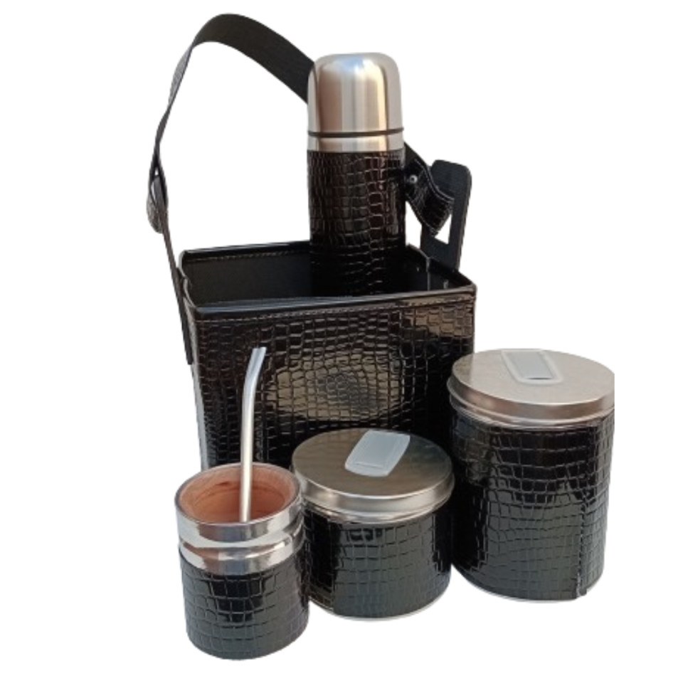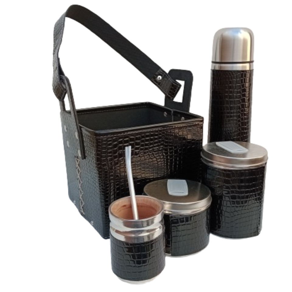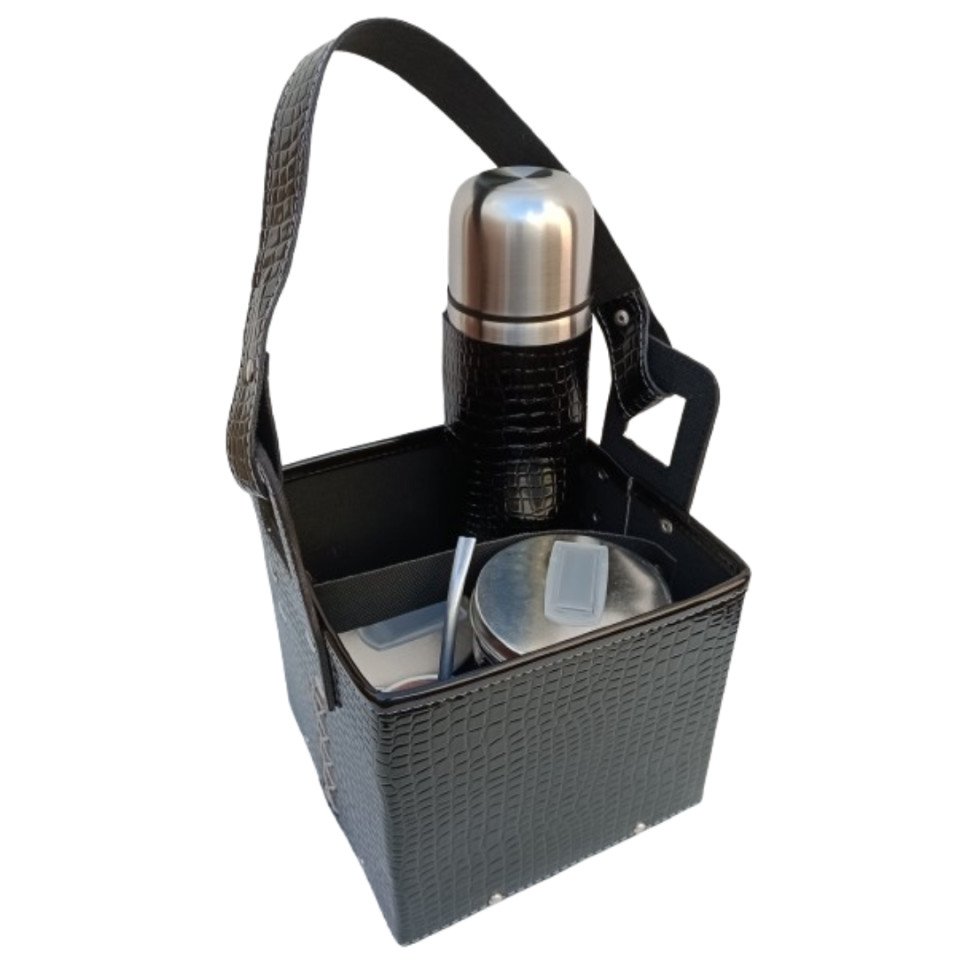 Set Matero Premiun Ecocuero c/ Canasta y Termo Negro Crocot Charol