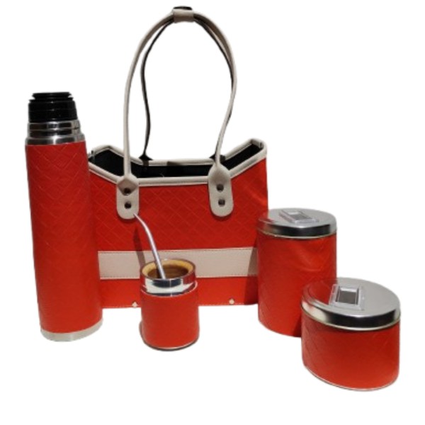 Set Matero Premiun Ecocuero c/ Cartera y Termo Rojo Crocot Charol Combinada con Latas