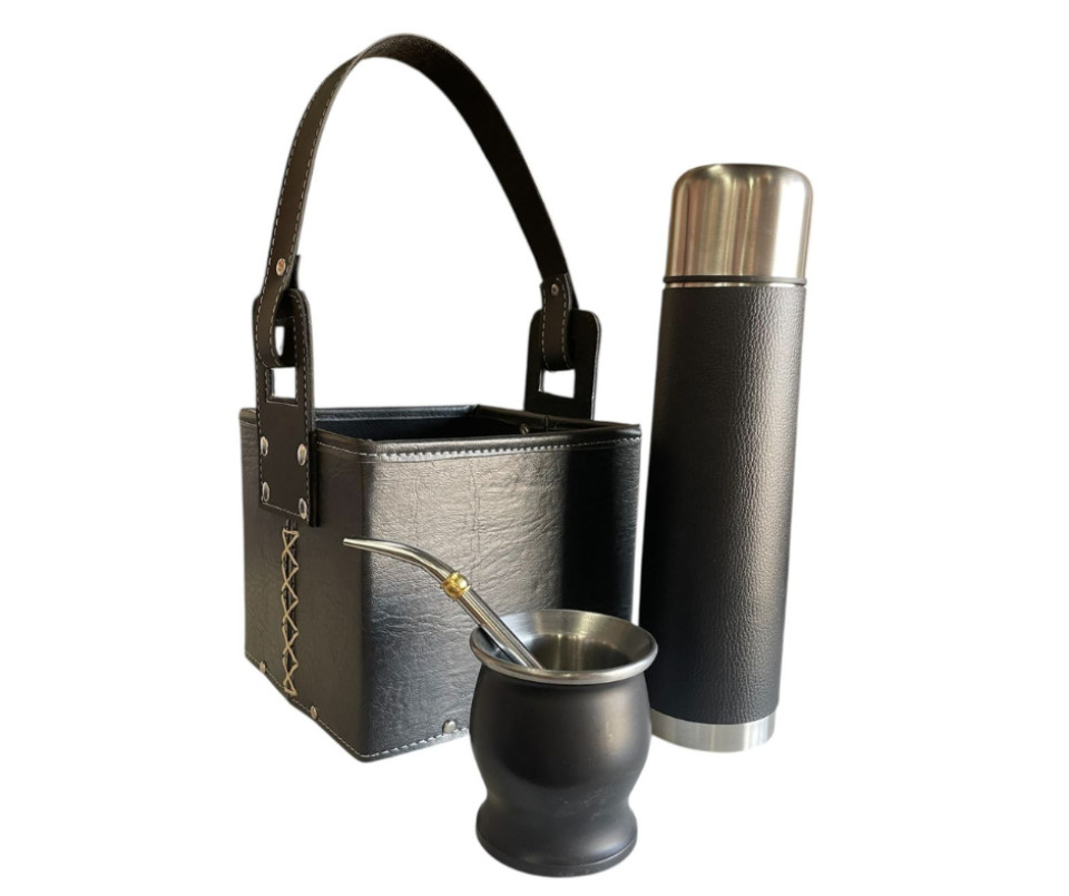 1-Mate pary negro de acero inoxidable por dentro y polipropileno por fuera