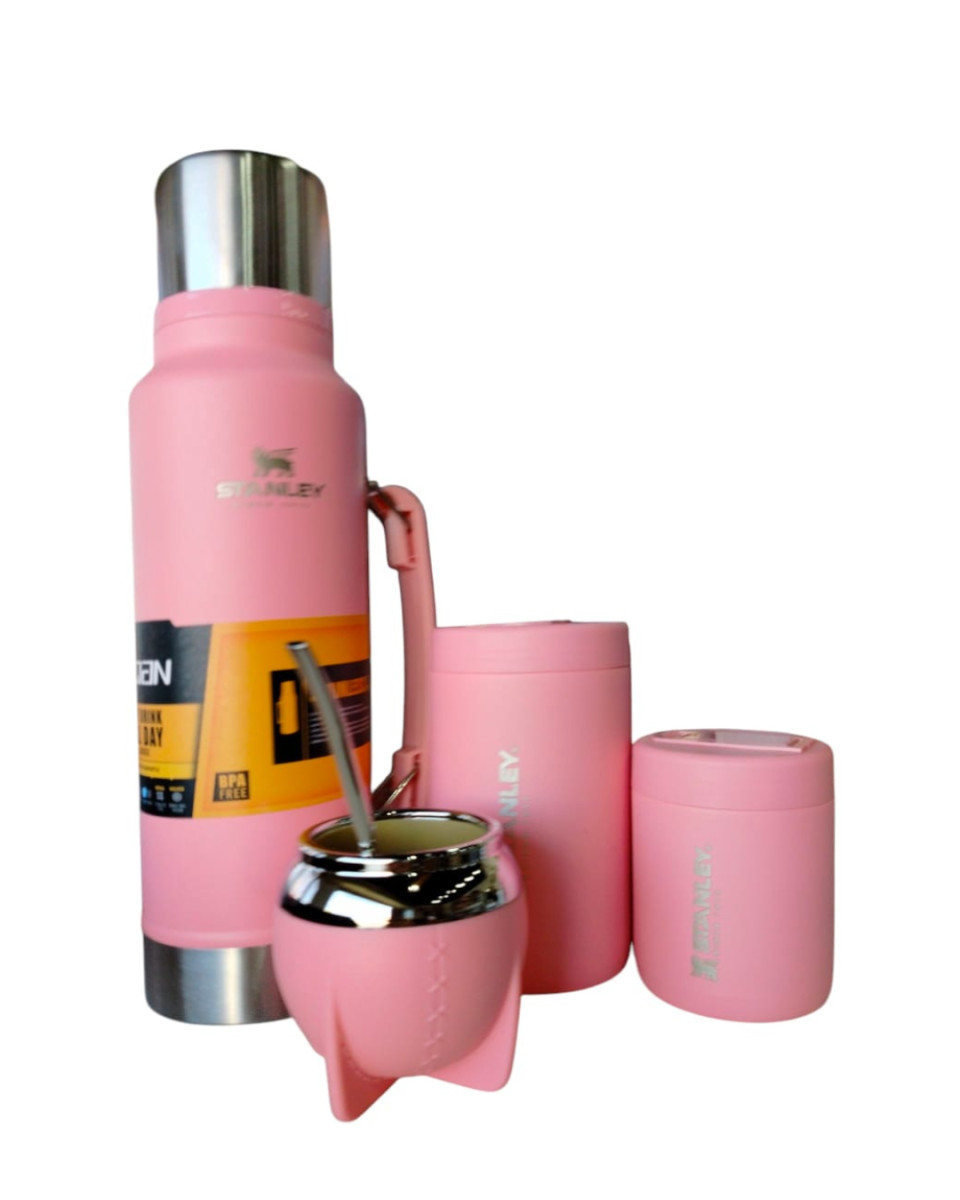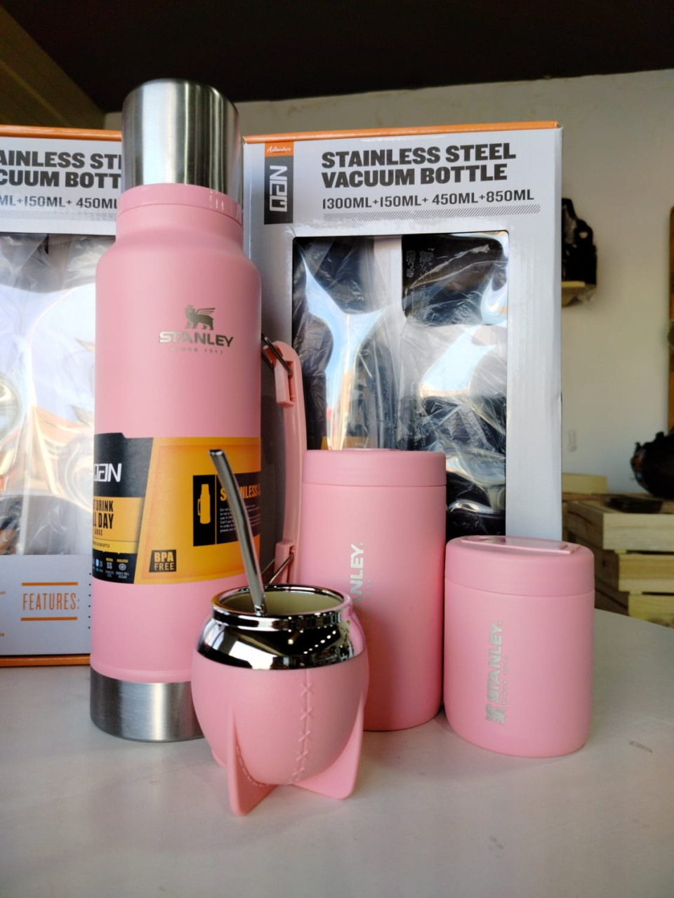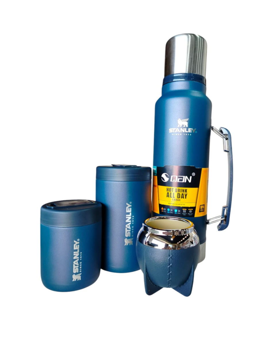 SET COMPLETO x 4 PIEZAS * TERMO Grabado STANLEY 1 Litro + MATE 280ML + YERBERO + AZUCARERO (EN CAJA EXHIBIDORA) ACERO INOXIDABLE