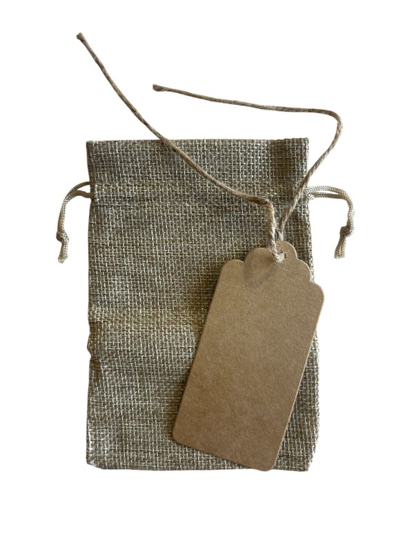 BOLSITAS DE ARPILLERA con hilo + TARJETA .